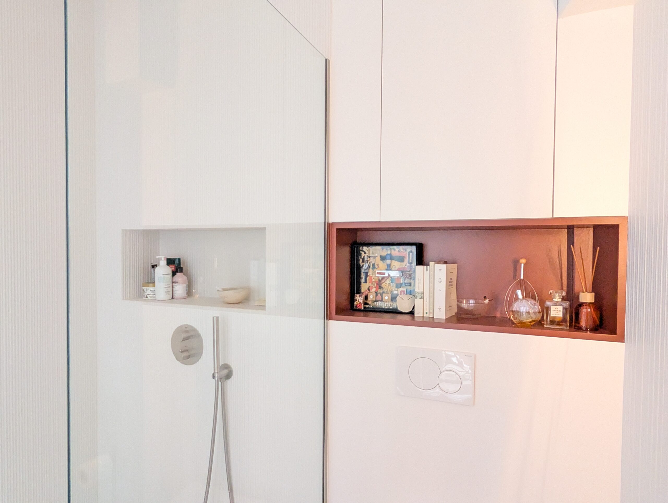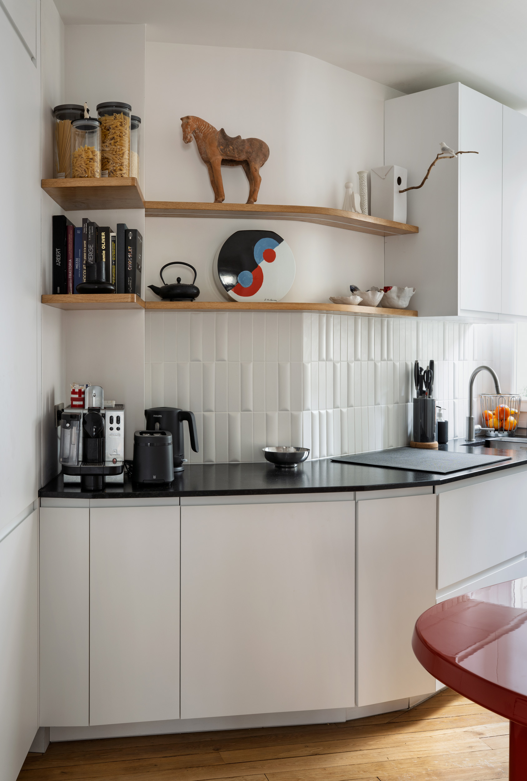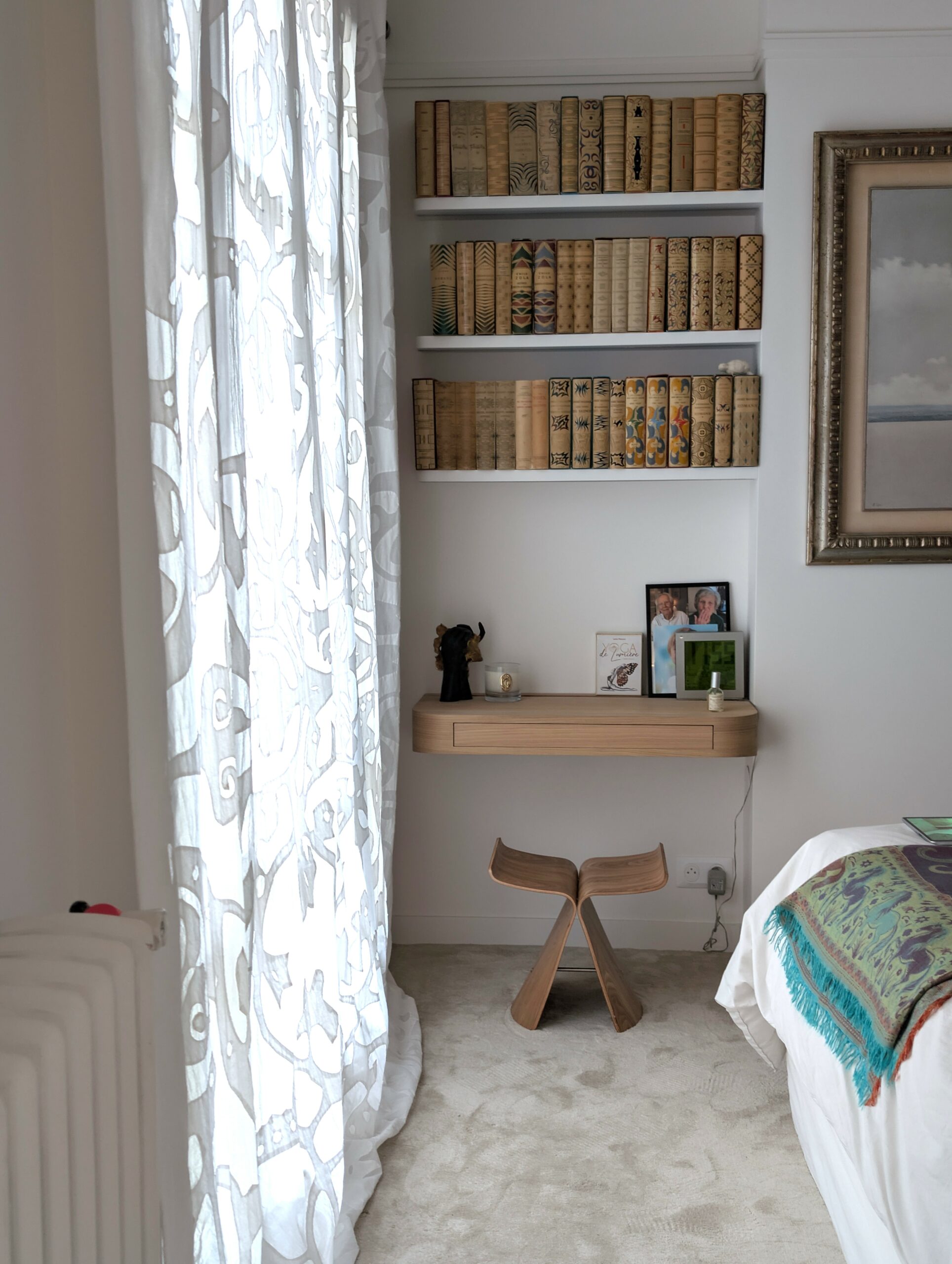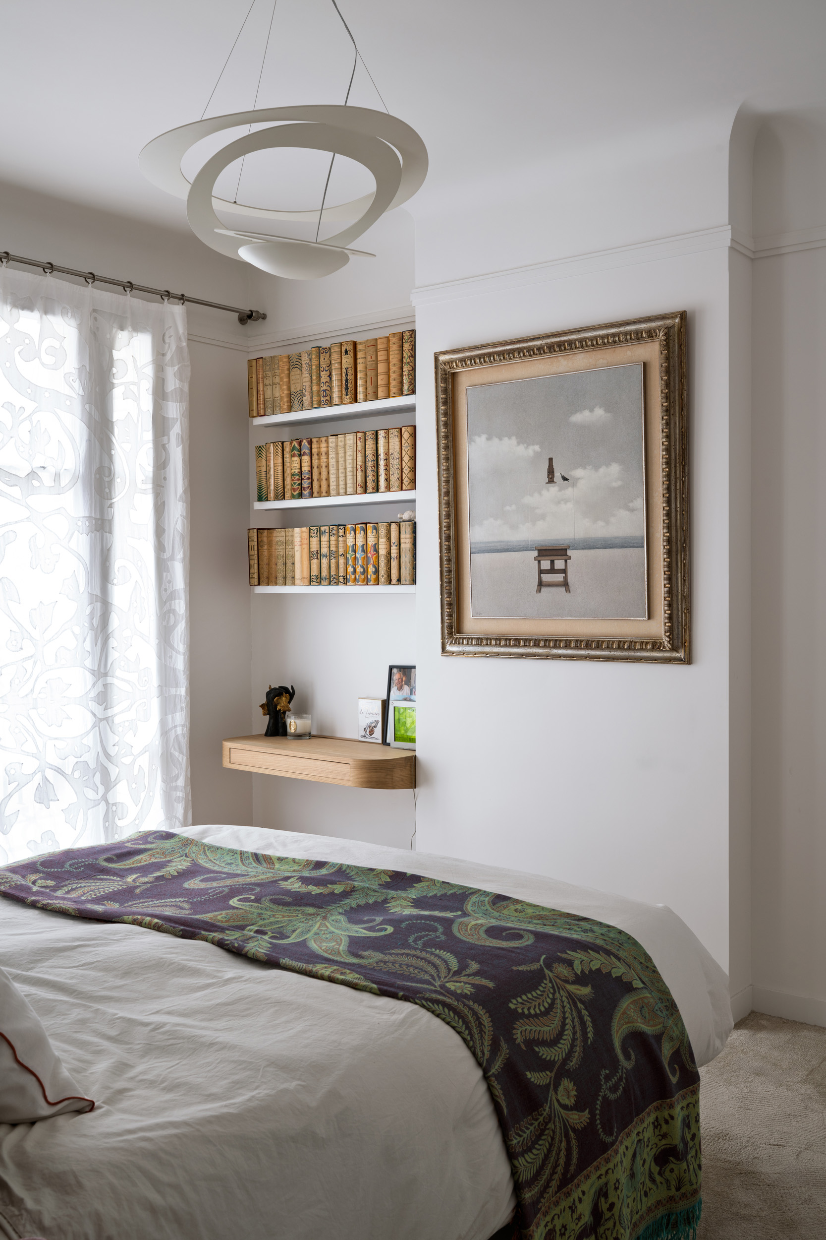 Idéalement situé sur les hauteurs de Montmartre, ce magnifique appartement, très lumineux, a une jolie vue sur Paris. Ses propriétaires voulaient en faire leur pied-à-terre parisien leur permettant de recevoir également leurs enfants. Nous avons revu intégralement l’agencement en réalisant 2 chambres avec chacune leur SDB. Un grand salon situé à la place d’une ancienne chambre dispose d’une rotonde avec vue sur Paris. Les propriétaires étant de grands amateurs d’art, la place des différents tableaux et pièces de mobilier a été pensée en même temps que la conception globale du projet. Une attention particulière a été portée à l’éclairage, aux matériaux choisis ainsi qu’à l’harmonie des couleurs dans l’appartement sur une base de murs blancs pour mettre en valeur les éléments de décoration.